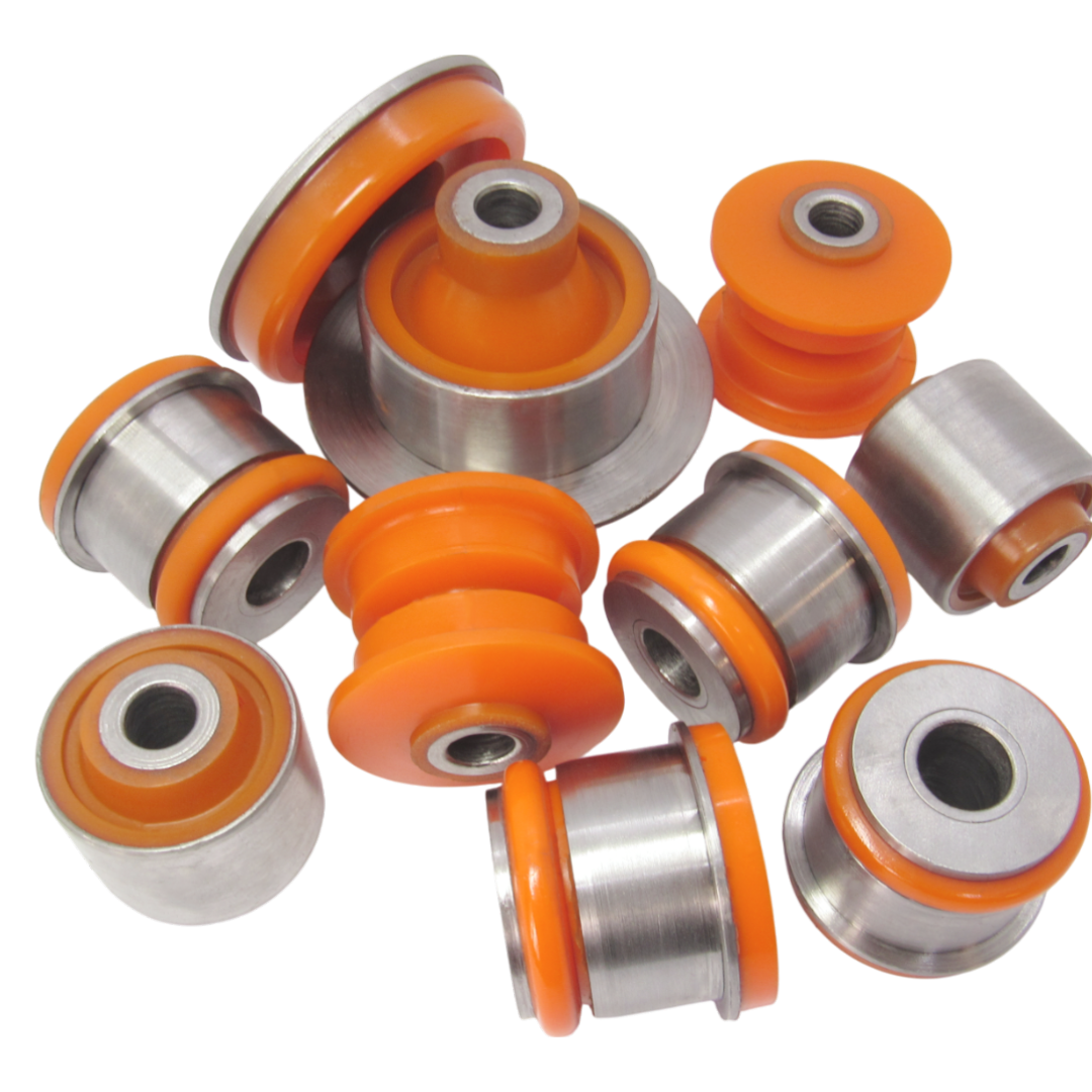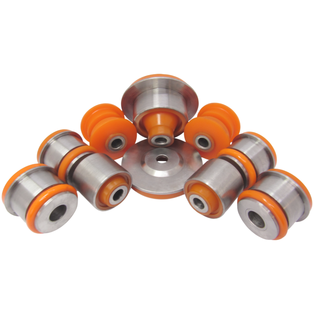 Поліуретановий комплект сайлентблоків заднього підрамника Audi A6 1994-1997 quattro має артикул 443599125; 443 599 125; 443511277B; 443 511 277 B; 443505145A; 443 505 145 A; 4A0505099E; 4A0 505 099 E; 4A0505099B;